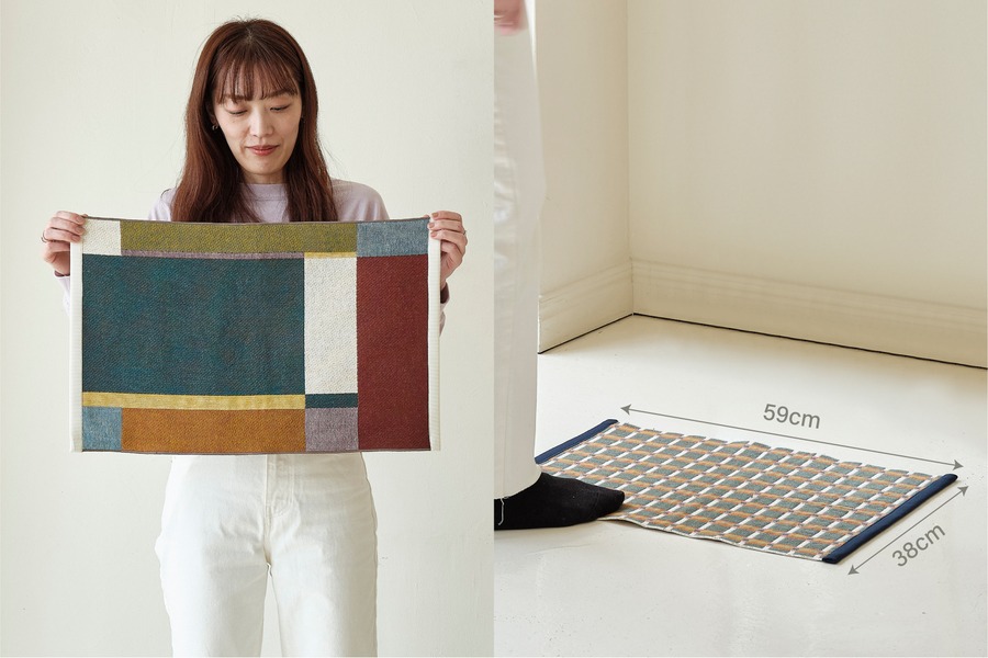 このマットは、京都にある自社工場で、染色から織りまで一貫して仕立てています。長年の経験をもつ職人たちが、素材の個性を大切に、1枚ずつ丁寧に。再生可能な天然素材・ウールの魅力を引き出すために、色の深みややわらかな風合いが引き立つ織りにこだわりました。