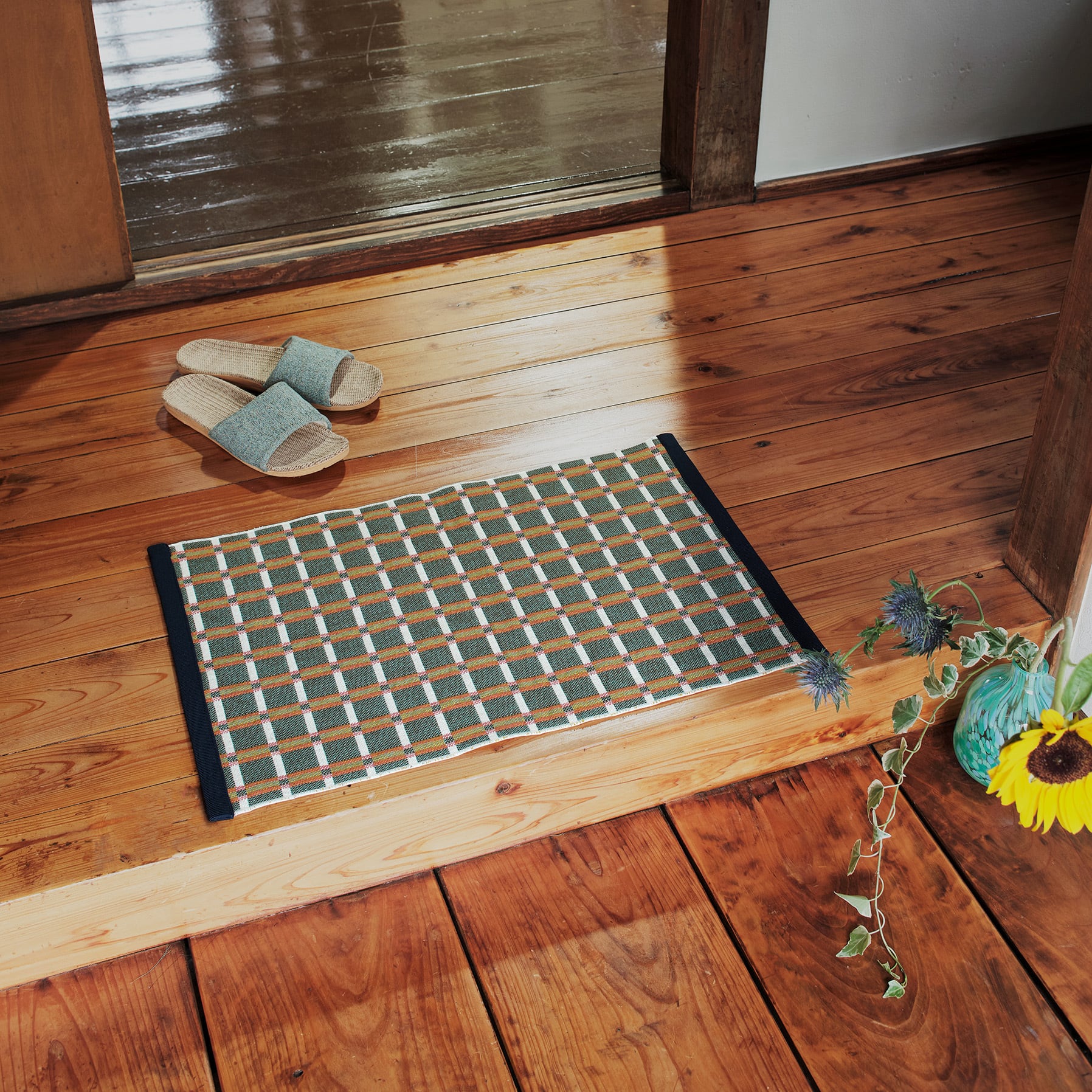 玄関マットとしてはもちろん姿見の足元や観葉植物の下、棚の上など、インテリアが少し物足りないな?という時にピッタリのコンパクトなサイズ感です。表と裏で異なるカラーを楽しめるリバーシブル仕様なので気分や季節に合わせて気軽に模様替えが出来ます。環境に配慮しながら自社工場で一枚一枚ていねいに染色や製織・縫製まで手作りしています。マットだけにとどまらない、自由な“使い方”が楽しめるアイテムです。