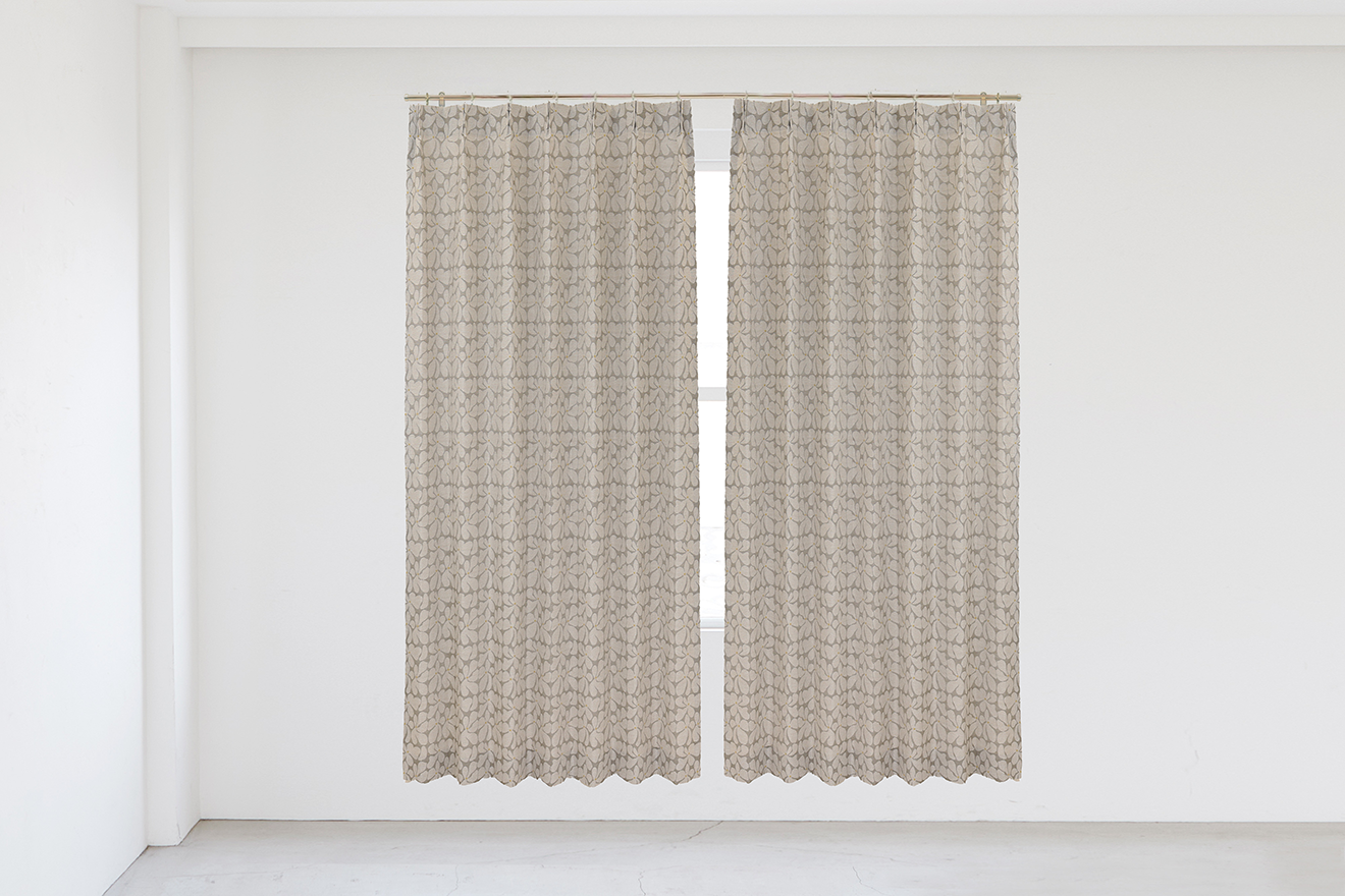 長くお使い頂きたいという思いから、ご家庭の洗濯機で洗えるポリエステル100%素材でお作りしています。縫製後に「形態安定加工ソフトウェーブ」という加工を施して繰り返し洗濯をしてもヒダが崩れないようにしてお届けします。定期的なお洗濯はカーテンの寿命を延ばしてくれるのでぜひご自宅でのお洗濯にも挑戦してみて下さい。ヨコ糸には再生ポリエステルを使用しています。環境に配慮したカーテンとなっています。