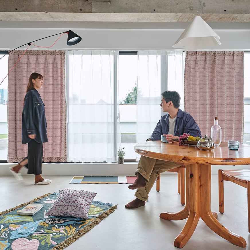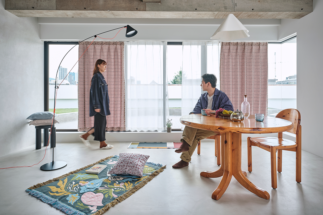 "居心地のよい憧れの場所に暮らす"をテーマにした「#50 Cozy layout」。お気に入りのレストランを自宅に再現したような、あたたかいけどミニマル、トレンド感たっぷりのスタイルをご提案しています。リノベーション空間に懐かしさを軸にセレクトしたファブリックをギャラリーのように配置したこだわりのコーディネートです。街へ出かけるのが好きな方・流行りのショップに敏感な方にピッタリのインテリアです。