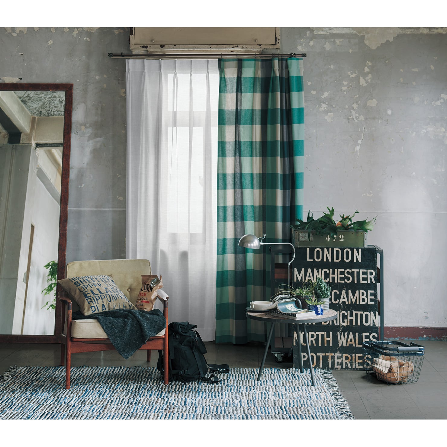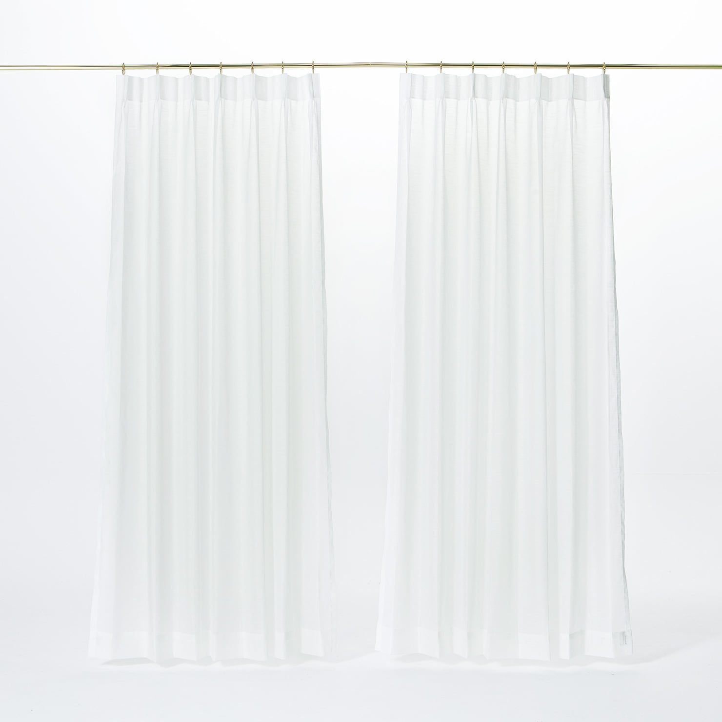 カーテンの上部にはヒダをとっています。ヒダを取ることで生地が波打ち床にストンと落ちてきれいなドレープが生まれます。生地のデザインや質感を楽しめる様に1.5倍の生地を使った大げさすぎないシンプルなお仕立てです。またヒダによる生地の重なりによって外からの視線を遮る効果も高まります。