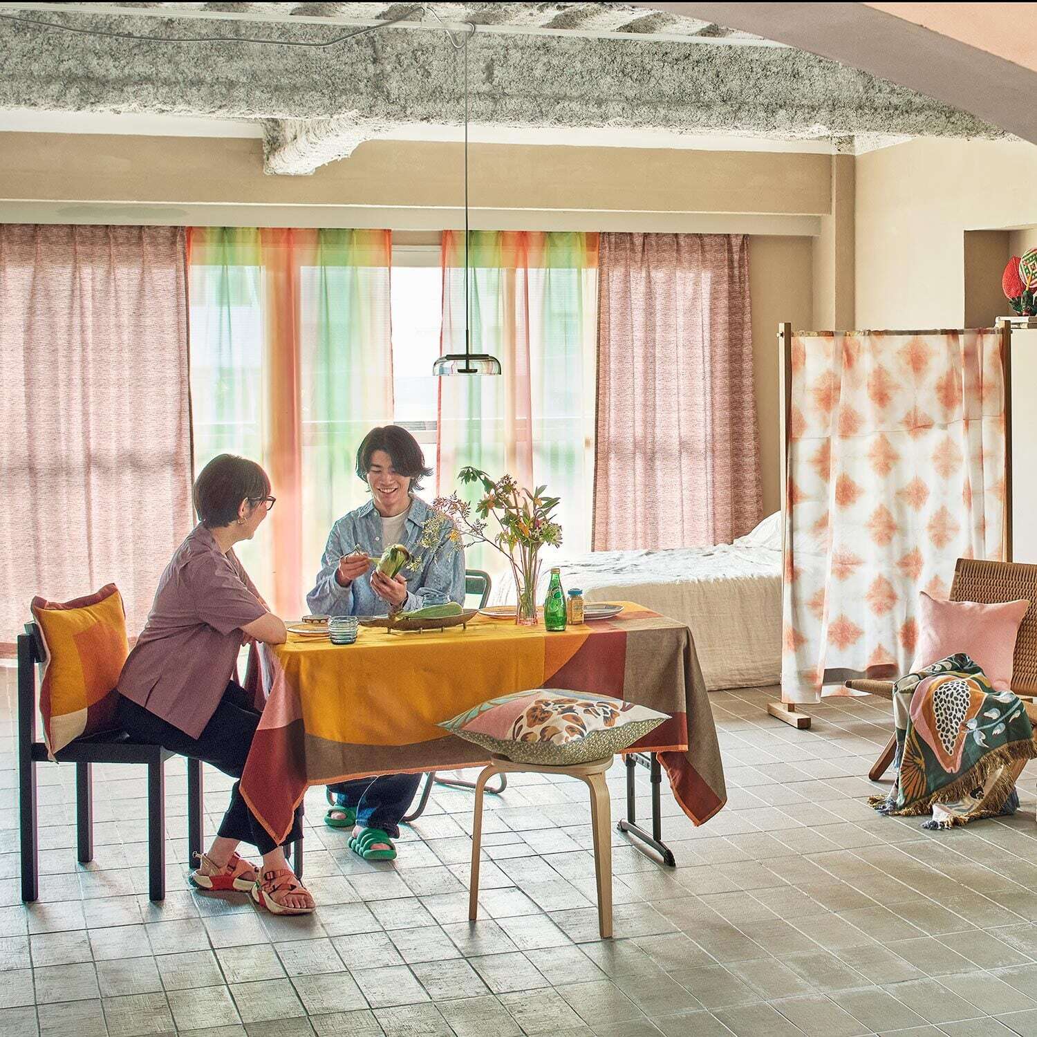 テキスタイルをカーテンに縫製