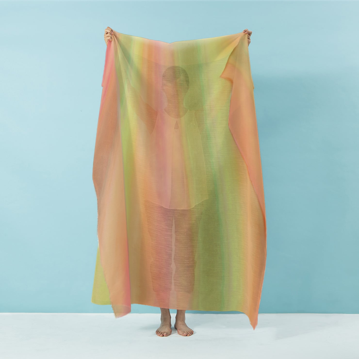 スイカをイメージしたレースです。水彩で描いた75cmの大きなグラデーションを大胆にプリントしました。ふとした瞬間に落ち込む事もある日も陽気に元気づけてくれます。
