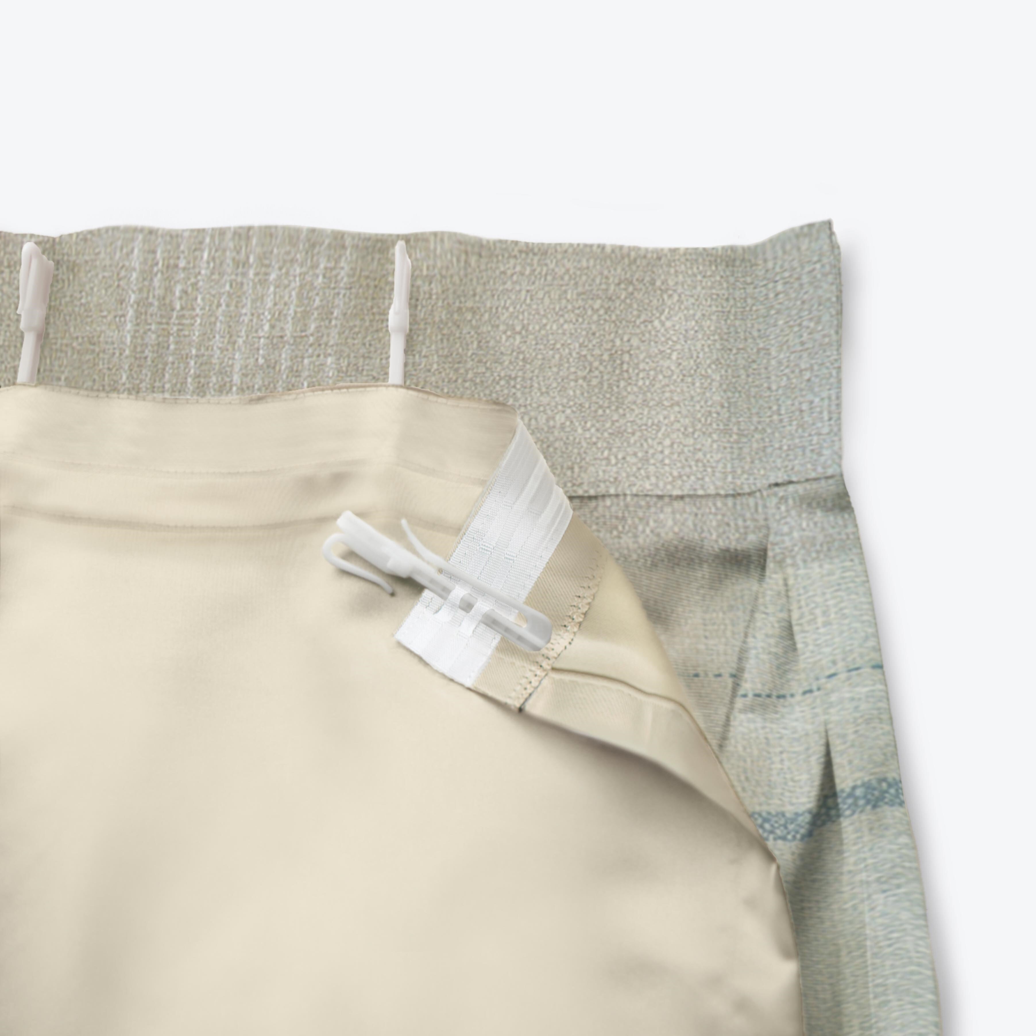 ※ドレープと一緒に注文頂いた場合はカーテン本体に「後付け出来る遮光裏地ライナー」をセットした状態でお届けします。裾から遮光裏地がはみださないようにドレープ丈より少し短くお作りします。