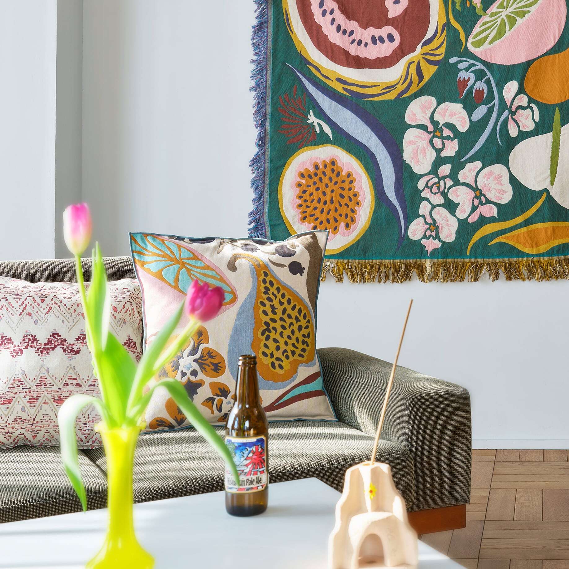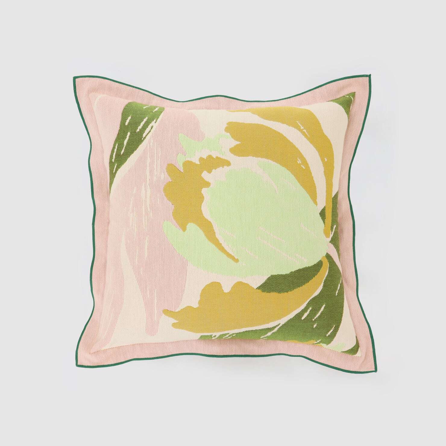 さまざまな愛の逸話をもつチューリップの魅力を”色”と”形”というシンプルな要素で再構築したクッションカバー「アイノメバエ」は、180年受け継がれた職人の技術と時代の感性をマリアージュするブランドのクラフトマンシップを前面に押し出したテキスタイルの魅力をストレートに表現した一品です。
