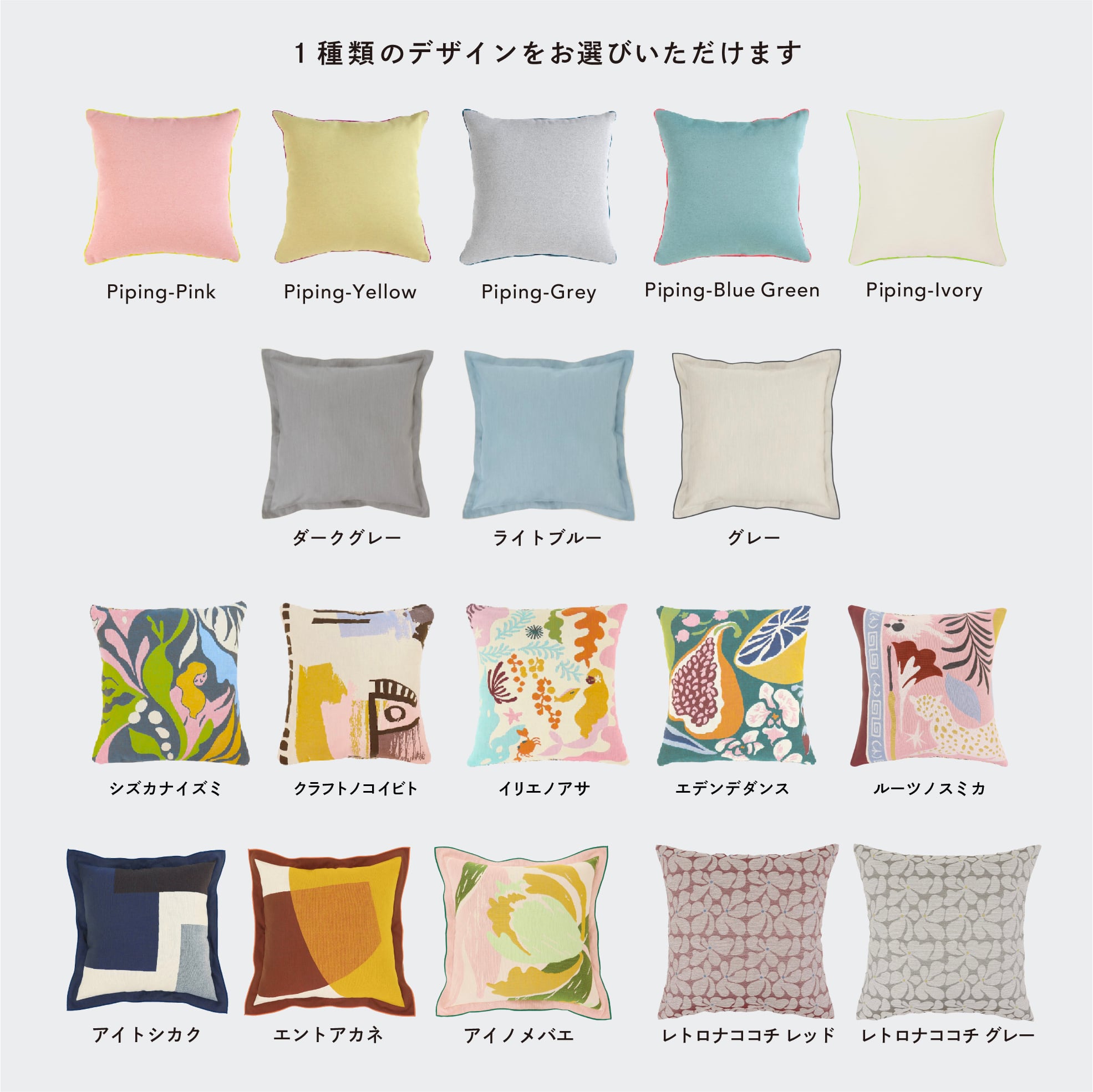 お好きなクッションカバーが選べるGIFTです。BOXに入れてお届けします。人気のパイピングクッション、マチのクッション、物語クッション、レトロナココチから1種お選びいただけます。メッセージカードは4種類、ラッピングステッカーは3種類の中からお選び頂けます。