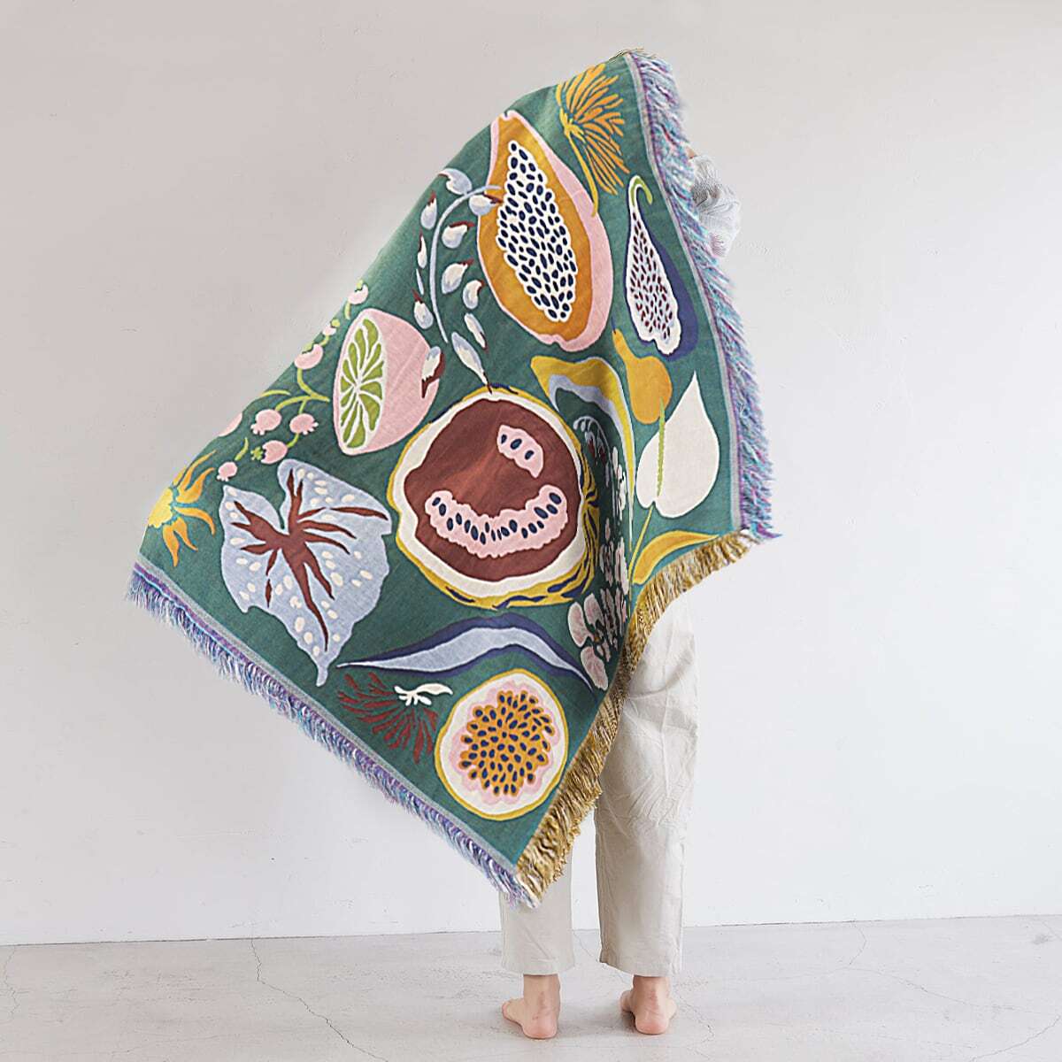 ひざ掛けや持ち運びにちょうどいいサイズ感です。