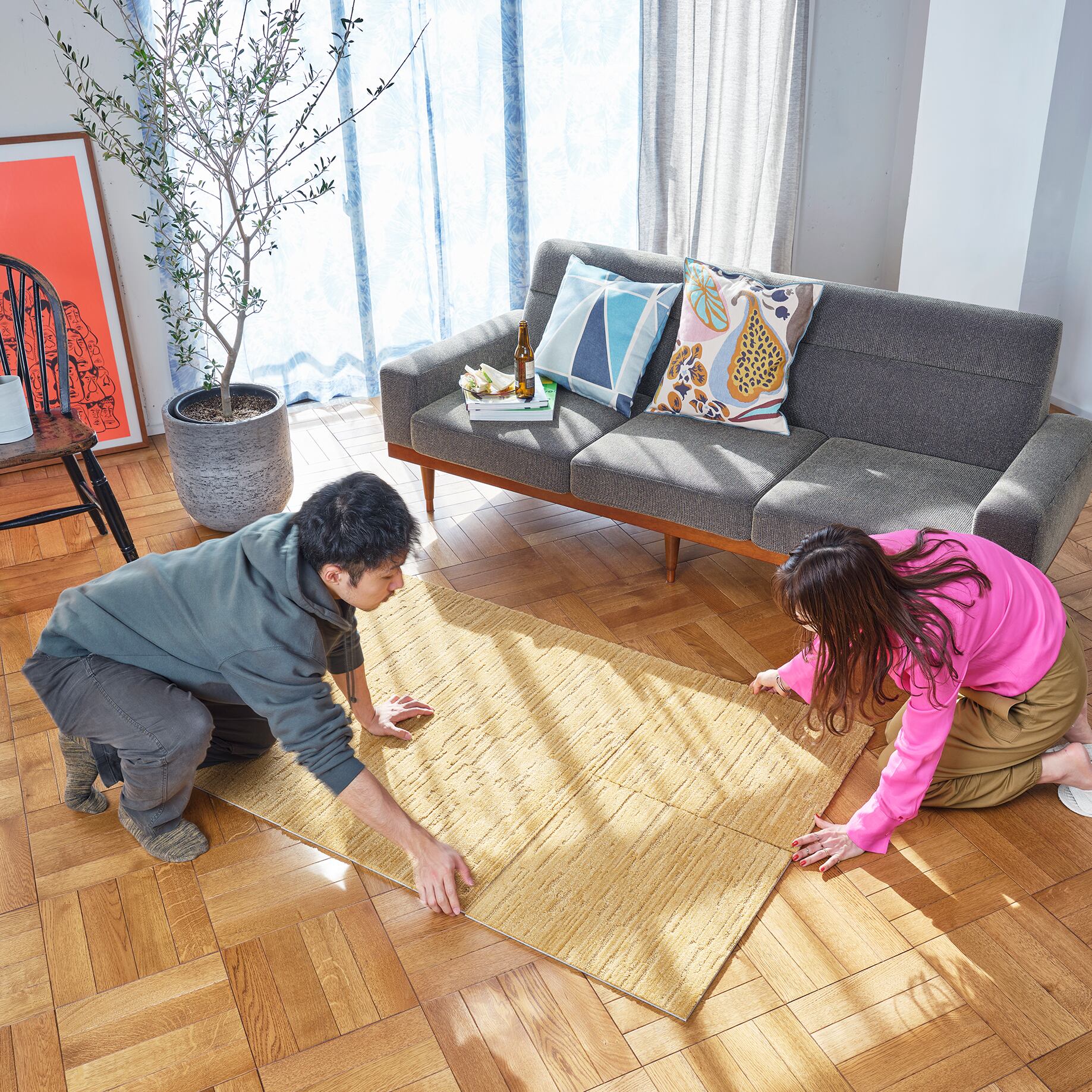 6枚をSETでお届けするので6枚を繋げて1枚のラグとしてお使い頂く事も出来ますが、例えば「玄関で2枚+キッチンで4枚」などシーンや床の面積に合わせて別々にお使いいただく事も可能です。