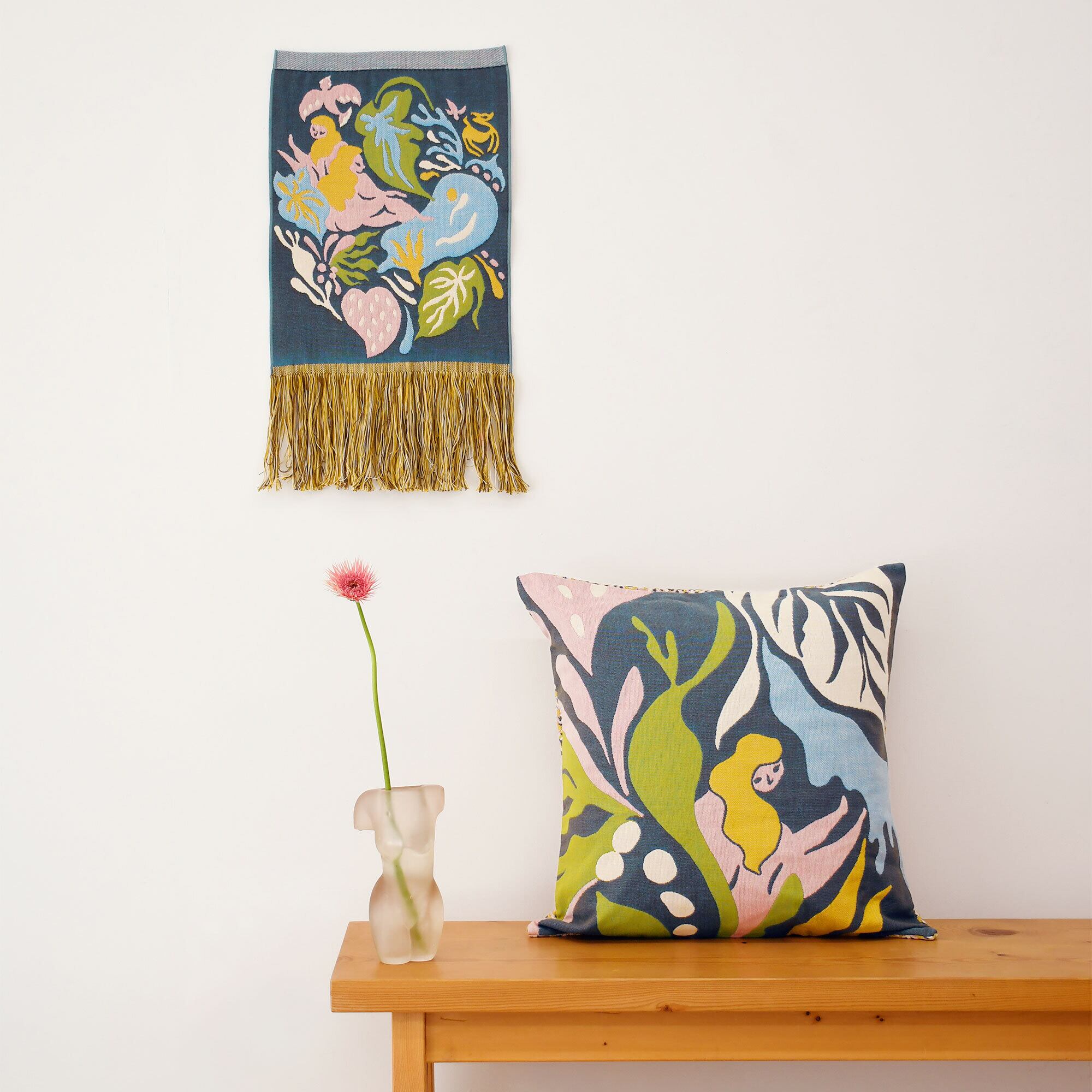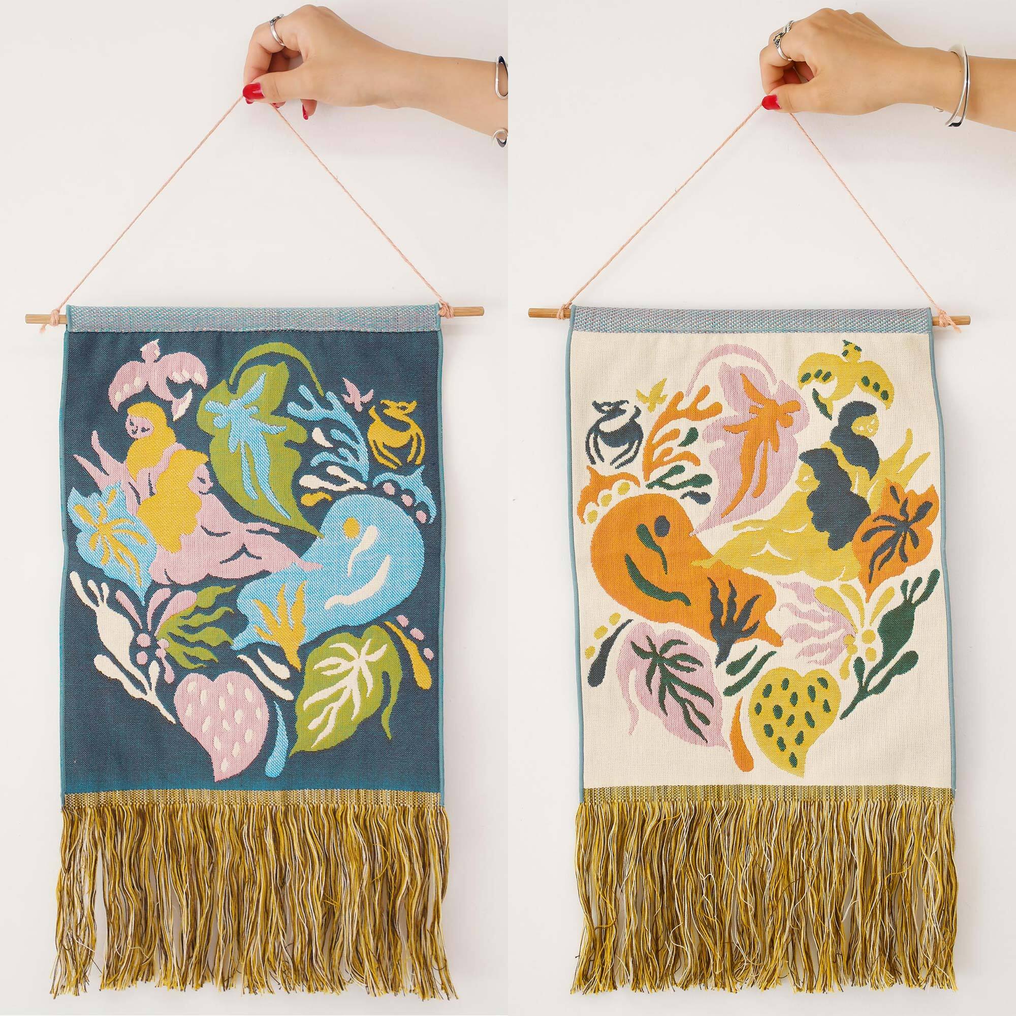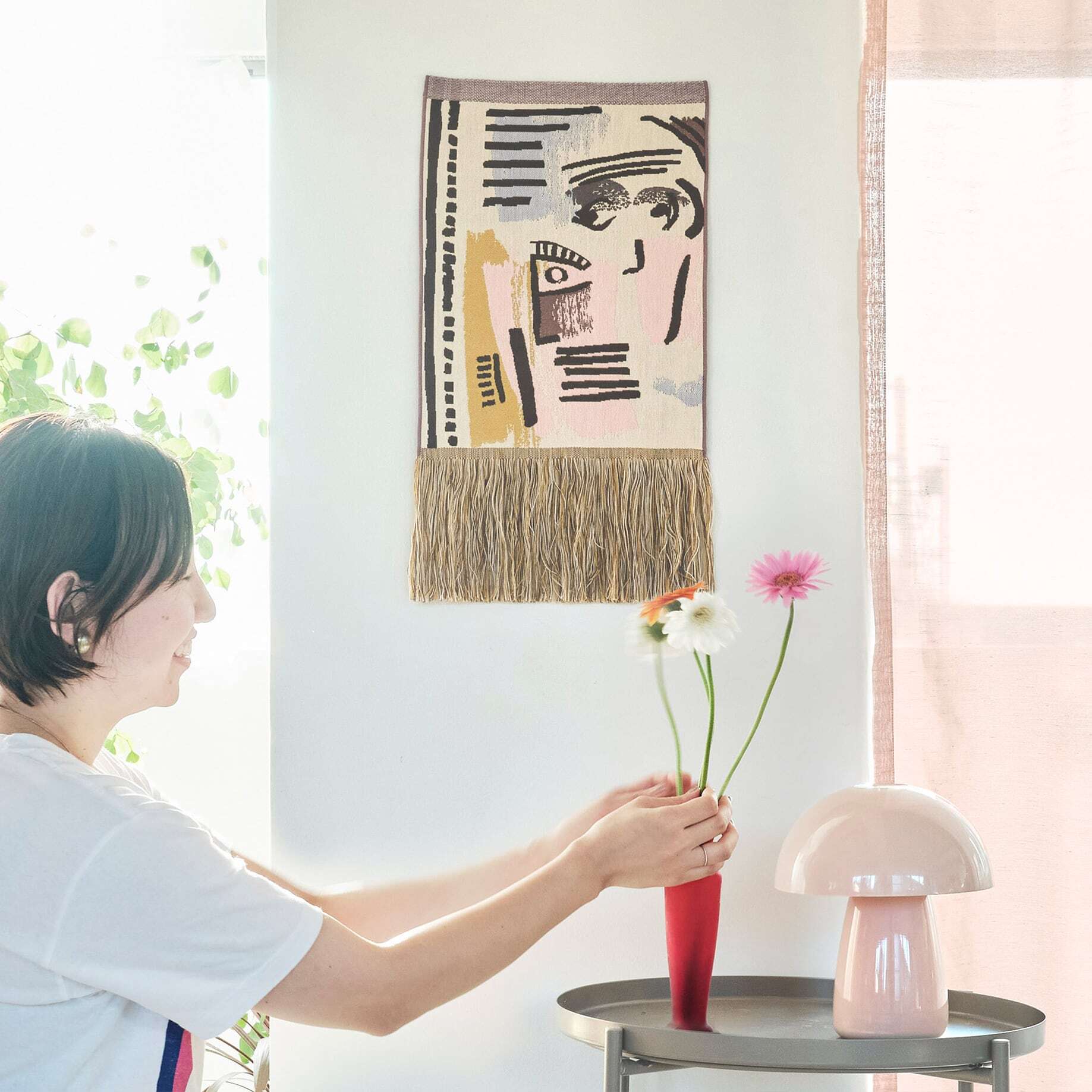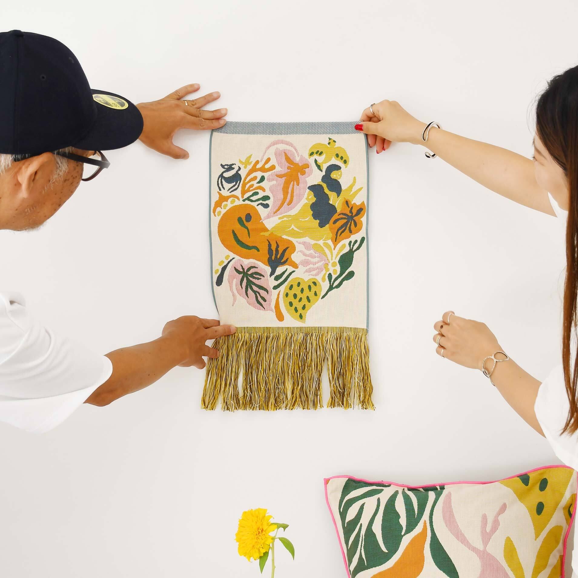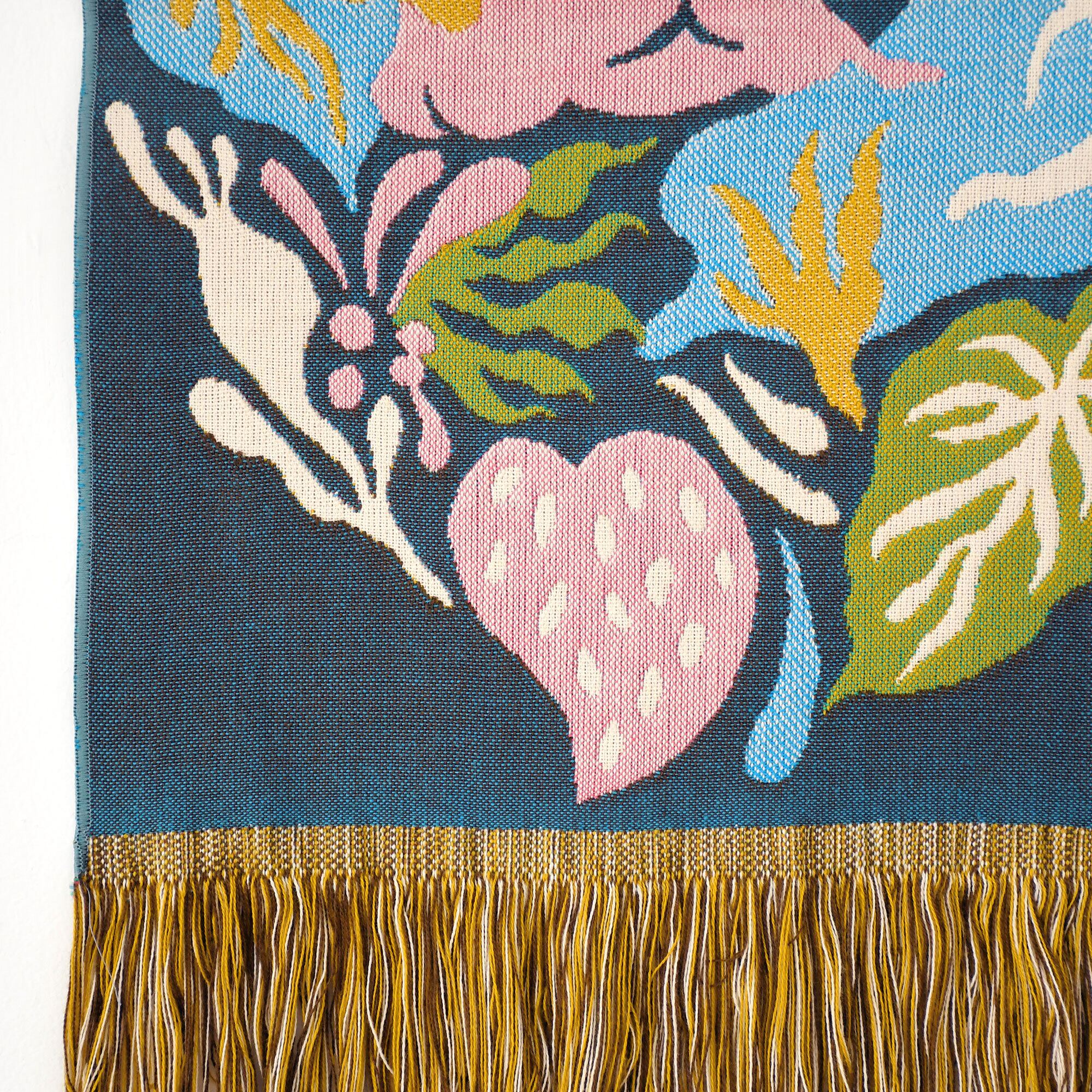 物語を織り上げた人気のブランケット「クラフトノコイビト」がタペストリーになりました。